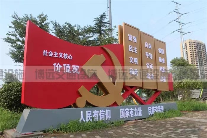 由于现在很多的场所都会响应号召,党建标牌也成为了当下比较盛行的的党建思维宣扬形式,所以党建标牌在建设的时候要做到创意新颖、造型独特,但不能偏离党建思维,事实上党建标牌和社会主义价值观标牌在设计风格上多多少少都有相似之处,主色调都是赤色为主,表现出明显的特征。