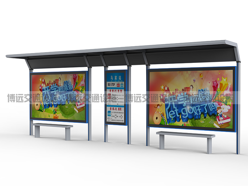 新版公交候车亭的长处:新一代公交站台的箱体具有环保、耐高温、弹力强、耐用、抗老化、耐压、防涂污、耐性好、硬度高、阻燃等等特点,使用寿命长而且保护方便;新一代公交站台不仅制作精美、样式也十分的新颖。除了电子阅报栏以外,还还有两个灯箱可放城市的公益画布、城市地图等,另外到晚上新一代公交站台可自动亮起,便于市民阅读电子阅报栏的资讯、也为过往的行人供给充足的照明。