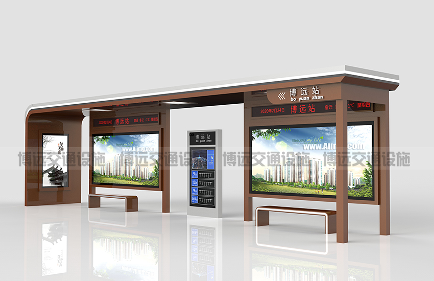 首先在结构上的防水设计,宿迁博远交通每一台公交候车亭在设计时都考虑到防水功能,灯箱外框拉门式设计,底部设置排水孔,减少雨水渗透。设计带雨棚的候车亭,雨棚除了能让候车亭运行稳定以外,还能为候车亭遮挡雨水,防止渗入到灯箱内部。